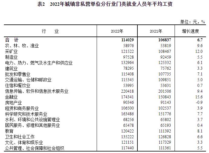 2022年城鎮(zhèn)非私營單位分行業(yè)門類就業(yè)人員年平均工資。來自國家統(tǒng)計(jì)局網(wǎng)站