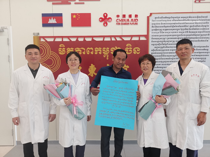 人民網(wǎng)曼谷5月16日電 (記者趙益普)16日,中國援柬中醫(yī)抗疫醫(yī)療隊(duì)在位于柬埔寨金邊的考斯瑪中柬友誼醫(yī)院舉辦“中醫(yī)門診開放日”活動(dòng),醫(yī)療隊(duì)為所有來門診的患者解疑、看診、贈送藥品。15日,中國援柬中醫(yī)抗疫醫(yī)療隊(duì)全體17名隊(duì)員獲得柬埔寨衛(wèi)生部頒發(fā)的柬埔寨王國騎士勛章。據(jù)悉,醫(yī)療隊(duì)已順利完成一年的任務(wù),即將于近期返回中國。