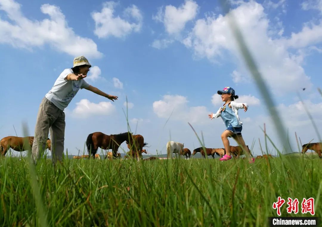 2016年8月,祖孫倆在塞罕壩機(jī)械林場(chǎng)內(nèi)玩耍。楊可佳 攝