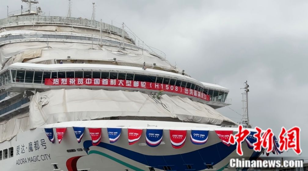 看,這艘身系“敦煌飛天彩帶”楚楚動人的我國首艘國產(chǎn)大型郵輪“愛達·魔都”號,今日盛裝出塢!