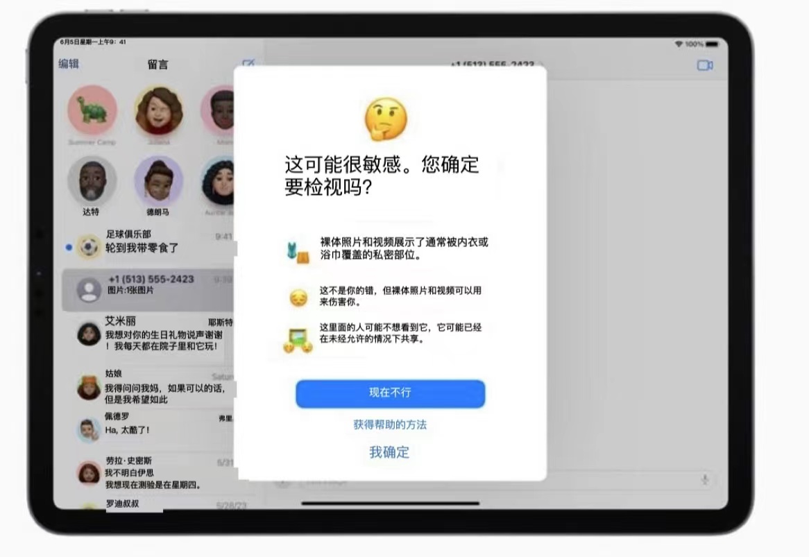 另外,值得注意的是,在近日蘋果發(fā)布的隱私更新中,蘋果對隔空投送等又進一步更新。當(dāng)用戶收到不良信息會被提醒“這可能很敏感,你確定要檢視嗎?”