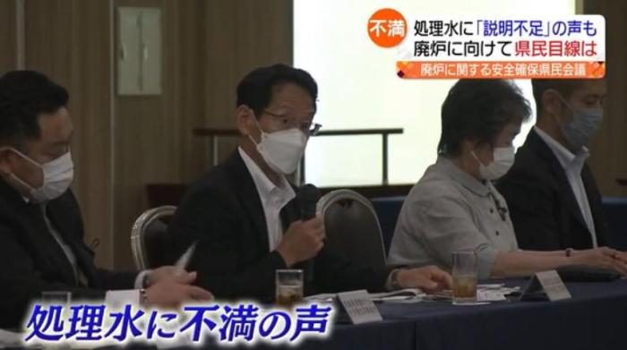 當(dāng)?shù)貢r(shí)間13日下午,日本福島縣民眾召開會(huì)議,參加者針對日本政府計(jì)劃在今夏正式向大海排放核污水一事表示不滿。圖片來源:福島中央電視臺(tái)視頻截圖