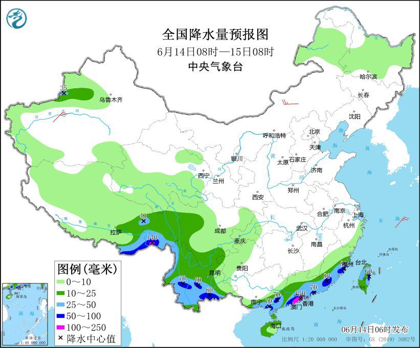 中新網(wǎng)6月14日電 據(jù)中央氣象臺網(wǎng)站消息,中央氣象臺預(yù)報,未來三天,我國整體的天氣形勢為北晴南雨,北方大部地區(qū)將陸續(xù)感受到炎炎夏日的威力,西安、鄭州、石家莊今明兩天最高氣溫將在37-39℃;南方降雨主要集中在華南沿海地區(qū),雨量普遍有大到暴雨。華南這種臨近端午節(jié)的大范圍強(qiáng)降雨又稱為龍舟水。氣象專家提醒,未來三天進(jìn)入華南“龍舟水”集中期,需注意持續(xù)性強(qiáng)降雨可能引發(fā)的次生地質(zhì)災(zāi)害。