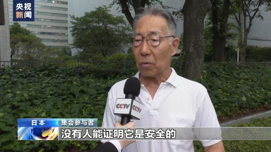 集會參與者:說是“處理水”實則是污染水,里面含有大量的放射性物質(zhì)。如果真的是安全的話,那請他們用那個水洗澡,去使用它,用它做飯,去喝它,這樣生活五年的話應(yīng)該就清楚了。像這樣,沒有任何人能說它實際上是安全的,沒有人能證明它是安全的。