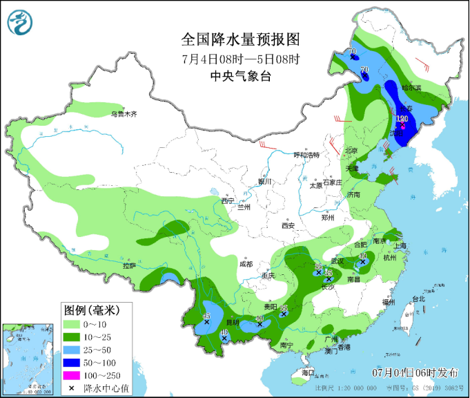 中新網(wǎng)7月4日電 據(jù)中央氣象臺(tái)網(wǎng)站消息,中央氣象臺(tái)今晨繼續(xù)發(fā)布暴雨藍(lán)色預(yù)警:預(yù)計(jì)今明兩天,東北地區(qū)及內(nèi)蒙古東北部將成強(qiáng)降雨主陣地,其中今天白天至夜間,內(nèi)蒙古東北部、黑龍江西南部、吉林、遼寧中東部等地部分地區(qū)有大到暴雨,遼寧東北部等局地有大暴雨(100~120毫米);上述部分地區(qū)伴有短時(shí)強(qiáng)降水(最大小時(shí)降雨量20~50毫米,局地可超過60毫米),局地有雷暴大風(fēng)等強(qiáng)對(duì)流天氣。明天,內(nèi)蒙古東北部、黑龍江大部、吉林北部有中到大雨,局地暴雨。受強(qiáng)降雨影響,內(nèi)蒙古東北部、東北部分地區(qū)等地有暴雨災(zāi)害中高風(fēng)險(xiǎn),關(guān)注局地可能發(fā)生的山洪、地質(zhì)災(zāi)害和城鄉(xiāng)積澇,并防范強(qiáng)對(duì)流天氣的危害。
