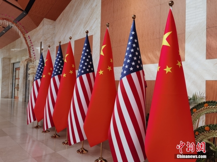 2022年11月,中美兩國元首在印尼巴厘島舉行會(huì)晤。圖為會(huì)場外擺放的中美兩國國旗。 郭金超 攝