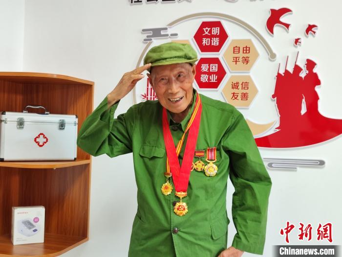 中新網(wǎng)贛州8月1日電 (熊錦陽(yáng))整理好軍裝,佩戴上勛章,8月1日清晨,老兵王益民就已洗漱完畢,對(duì)他而言,今天是一個(gè)重要的日子。早上6點(diǎn)15分,通過(guò)直播,王益民聚精會(huì)神地觀看著南昌八一廣場(chǎng)上舉行的升旗儀式,隨著五星紅旗緩緩升起,這位93歲的抗美援朝老兵迅速立正抬手,向著鮮艷的國(guó)旗做了一個(gè)標(biāo)準(zhǔn)的軍禮……