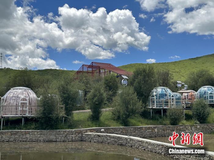 在園區(qū)內(nèi),除了大面積的草場(chǎng),還能看見(jiàn)一些臨水而建、顏色各異的圓形房間。王春貴介紹稱,那是供游客休閑的星空房。目前,紅原牦?,F(xiàn)代農(nóng)業(yè)園區(qū)正朝著牧旅融合的道路發(fā)展,咖啡屋、星空房等休閑設(shè)施以及牧旅融合體驗(yàn)區(qū)已初步建設(shè)完成。“全部建成以后,游客還能在園區(qū)內(nèi)體驗(yàn)牦牛喂養(yǎng)?!蓖醮嘿F說(shuō)。