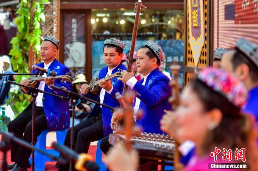 新疆藝術(shù)劇院木卡姆藝術(shù)團(tuán)樂隊(duì)奉上樂器聯(lián)奏《多彩新疆》。劉新 攝