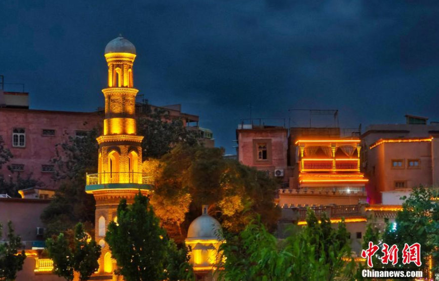 晚霞下的喀什古城一角。劉曉東 攝