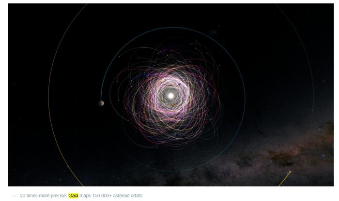 “蓋亞”團隊繪制出的150000多顆小行星的軌道。圖片來源:歐洲航天局官網(wǎng)