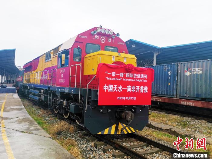 2022年,“中國天水—南非開普敦”國際班列從蘭州駛出。 李志杰 攝