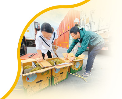 “針對水果等生鮮農(nóng)產(chǎn)品特點,我們采取7×24小時預約通關,設置農(nóng)食產(chǎn)品專用窗口,優(yōu)先辦理鮮活易腐農(nóng)產(chǎn)品接單、放行業(yè)務,并采取即到即檢即放模式,確保進口水果通關零延遲。”勐臘海關關長韓斌說。
