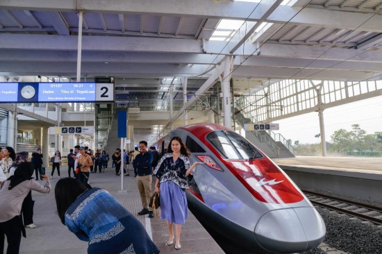 雅萬高鐵,依托復(fù)興號中國標(biāo)準(zhǔn)動車組先進(jìn)成熟技術(shù),主動適應(yīng)印尼當(dāng)?shù)剡\行線路條件,融合印尼本土文化,是中國高鐵向世界展示的“新名片”。