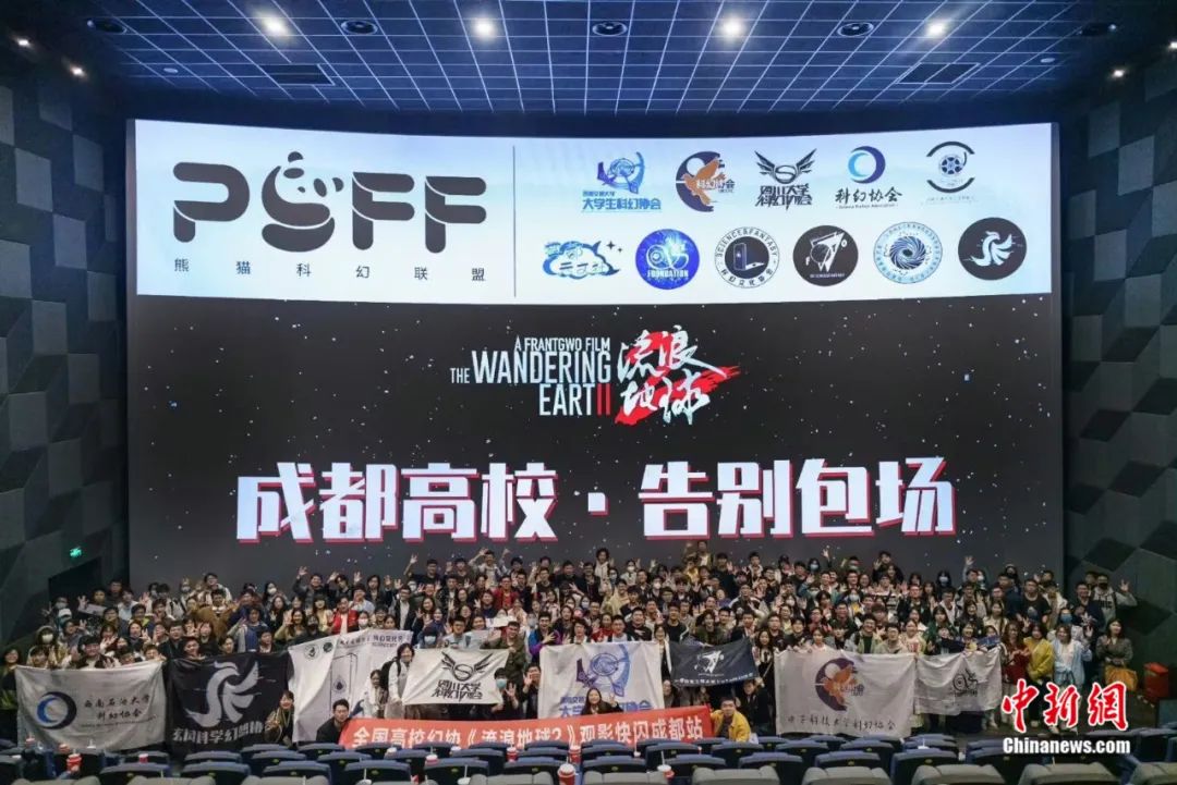 成都高??苹蒙鐖F(tuán)包場(chǎng)觀看《流浪地球》。受訪者供圖