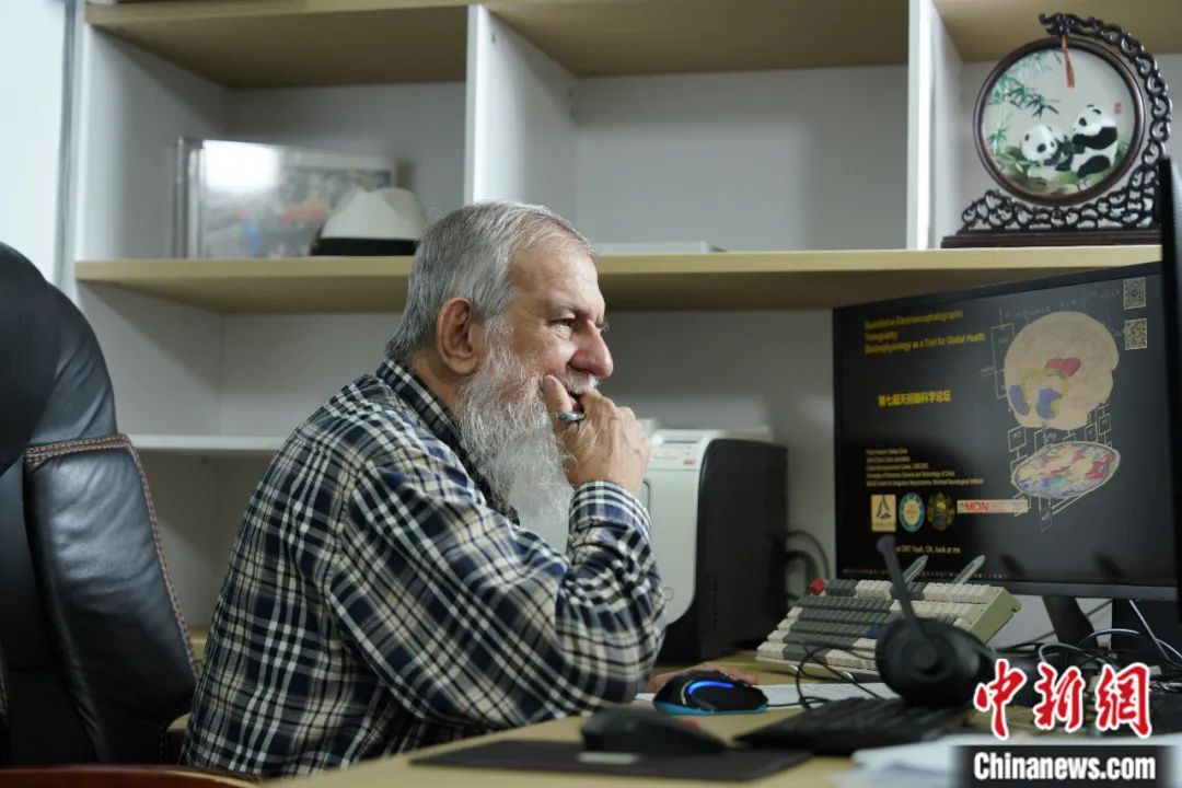 2023年11月,利用實驗室午間休憩間隙,裴德樂在電子科技大學接受了中新社“東西問”采訪。身著紅色衛(wèi)衣、藍色牛仔褲的裴德樂精神矍鑠,言語間中氣十足。