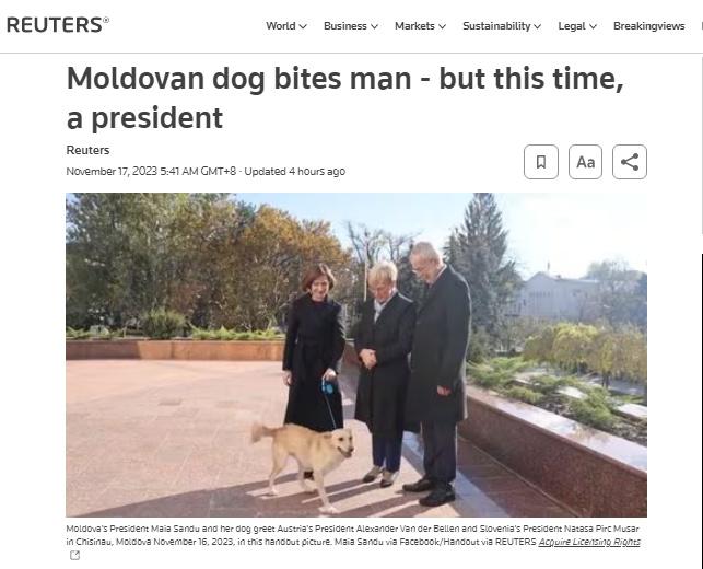 中新網(wǎng)11月17日電 據(jù)路透社援引摩爾多瓦媒體消息,當(dāng)?shù)貢r(shí)間16日,摩爾多瓦總統(tǒng)桑杜的愛犬在總統(tǒng)官邸咬傷了到訪的奧地利總統(tǒng)范德貝倫。