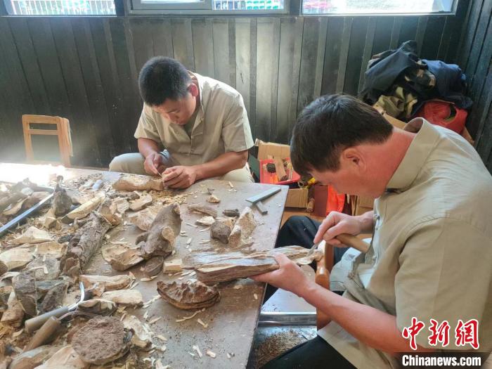 莞香制作技藝國(guó)家級(jí)非物質(zhì)文化遺產(chǎn)項(xiàng)目代表性傳承人黃歐遵循古法采下的“頭香”。李純 攝
