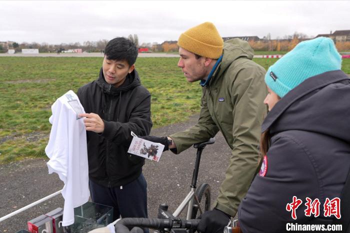 圖為選手展示其獲得“車騎將軍”主題系列T恤。德國漢文化藝術(shù)交流中心供圖