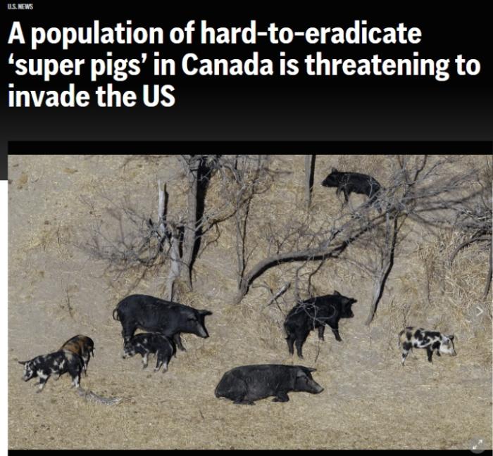 報(bào)道稱(chēng),“超級(jí)豬”目前很有可能南下進(jìn)入美國(guó),包括明尼蘇達(dá)州、北達(dá)科他州以及蒙大拿州等美國(guó)北部多州正嚴(yán)陣以待防止“超級(jí)豬”入侵。