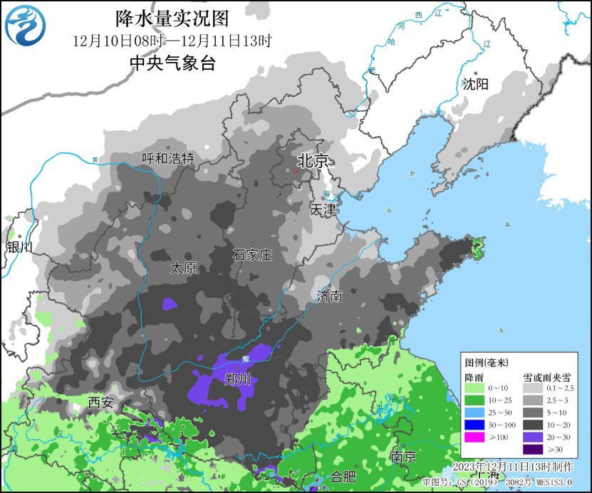 中新網(wǎng)12月11日電 據(jù)中央氣象臺網(wǎng)站消息,12月10日以來,華北、黃淮等地出現(xiàn)中到大雪,局地暴雪或大暴雪,新增積雪深度3~8厘米,部分地區(qū)超過10厘米;山西、河南、陜西、河北、內(nèi)蒙古等地共128個國家氣象觀測站日降水量突破12月極值。中東部地區(qū)氣溫普降8~12℃,局地14℃以上,北方部分地區(qū)出現(xiàn)6~8級陣風(fēng)。