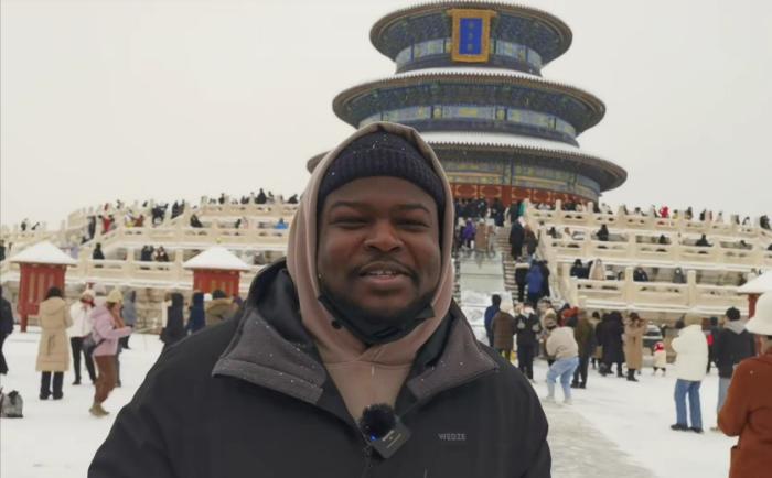 當(dāng)日正值大雪,銀裝素裹的天壇宛如一幅畫卷,古老的祈年殿在白雪的映襯下更顯莊重肅穆。留學(xué)生們沉浸在大雪紛飛的美景中,紛紛拿出手機(jī)互相打卡拍照,記錄下這美好瞬間。哈薩克斯坦籍留學(xué)生阿迪力(ARYSTAN ADIL)向記者介紹,這是他第一次來到天壇,“天壇是古代皇帝祭天祈雨的地方,我對中國的歷史很感興趣。”阿迪力說。