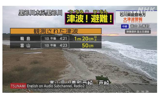 另?yè)?jù)日本放送協(xié)會(huì)(NHK)報(bào)道,日本氣象廳最新消息稱,石川縣的輪島港觀測(cè)到1.2米高的海嘯。