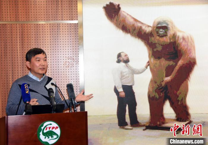 張穎奇研究員介紹團(tuán)隊(duì)這次破解步氏巨猿絕滅之謎的研究成果。中新網(wǎng)記者 孫自法 攝