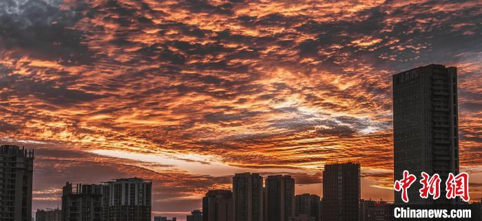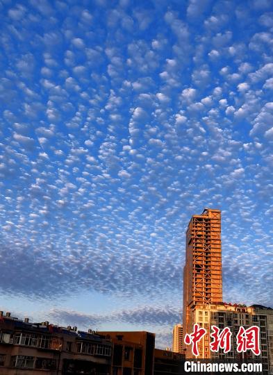 中新網昆明1月11日電 (黃興鴻)11日黃昏時分,云南昆明、德宏、臨滄等地的天空出現密集的“魚鱗云”。在夕陽的映照下,似霞似錦,如夢如幻。眾多網友在手機上的社交平臺上狂熱“曬”云,為彩云之南“上分”。