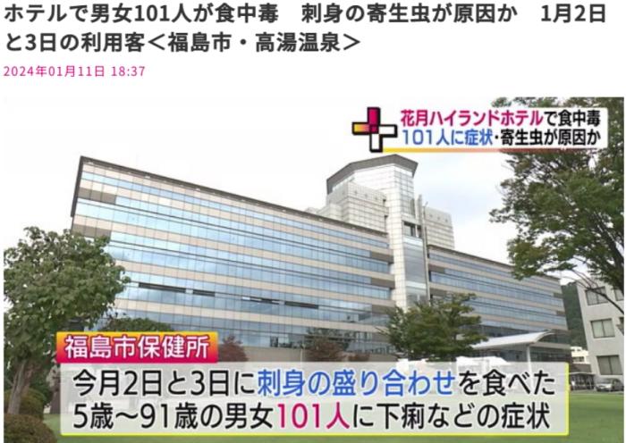 報(bào)道稱,中毒者年齡下至5歲,上至91歲。保健所在調(diào)查中發(fā)現(xiàn)該酒店提供的魚類刺身上檢測(cè)出寄生蟲,并認(rèn)為這就是導(dǎo)致此次食物中毒的原因。