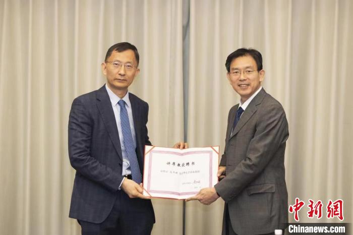 李路明(右)為高華健(左)頒發(fā)聘書。清華大學(xué)供圖