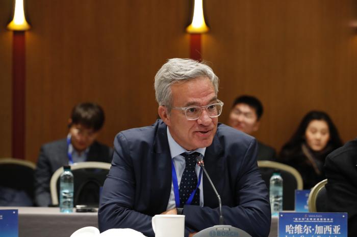 西班牙埃菲社前社長(zhǎng)、中國(guó)人民大學(xué)教授哈維爾·加西亞在會(huì)上作交流(主辦方供圖)