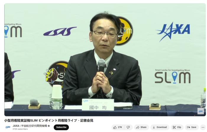 JAXA宇宙科學研究所所長國中均在新聞發(fā)布會上講話。圖片來源:日本宇宙航空研究開發(fā)機構(JAXA)直播截圖