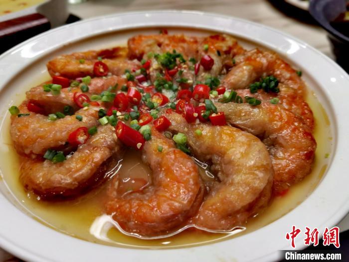 1月21日,臺(tái)青邱智良新餐館制作的辣子鮮蝦。 周燕玲 攝