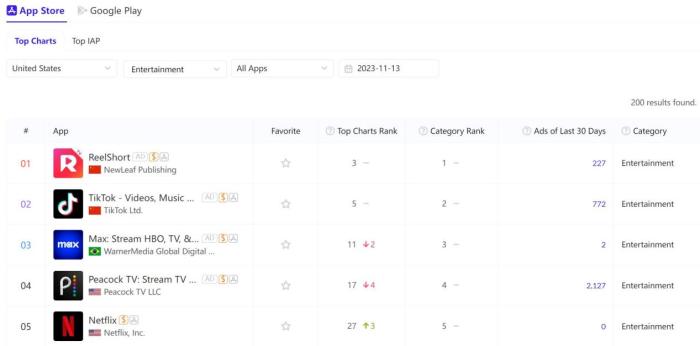 這些出海短劇雖“土”,卻在2023年國產(chǎn)應(yīng)用軟件賽道闖出一片天。據(jù)AppGrowing統(tǒng)計(jì),ReelShort已經(jīng)成為全球短劇市場的頂級(jí)產(chǎn)品,其母公司股價(jià)持續(xù)上漲。