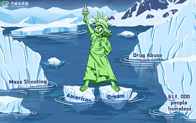 種種社會問題加劇社會悲觀情緒蔓延,社會治理失調(diào)凸顯“美國夢”行不再光鮮的事實。據(jù)美國廣播公司(ABC News)本月中旬報道,該公司聯(lián)合益普索開展了一項關于“美國夢”的民調(diào)。與2010年首次開展此項民調(diào)時,50%的受訪民眾相信“美國夢”存在的事實相比,最新民調(diào)中,僅有27%的人認為“美國夢”依然存在?!柏瑝簟边€是“幻夢”?以激勵個人獲得成功的“美國夢”恐將為社會困局的毒藤所纏繞,“自由女神火炬”指引下的美國夢成為一個個“美國噩夢”。(彭大偉 孟湘君 谷麗萍 陳善坤 薛凌橋)
