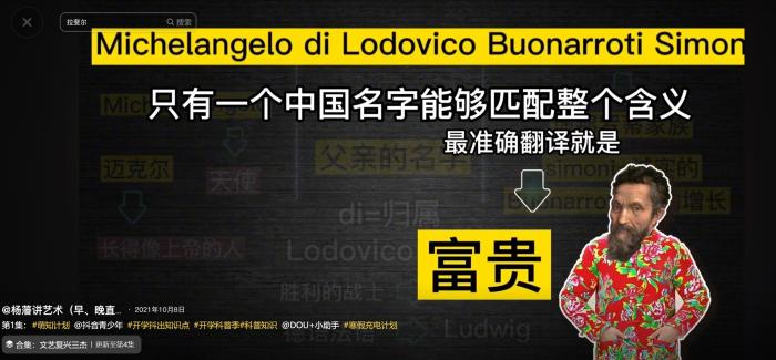 楊藩質(zhì)疑董董講解米開朗琪羅時抄襲自己的視頻文案。 截圖自短視頻平臺。