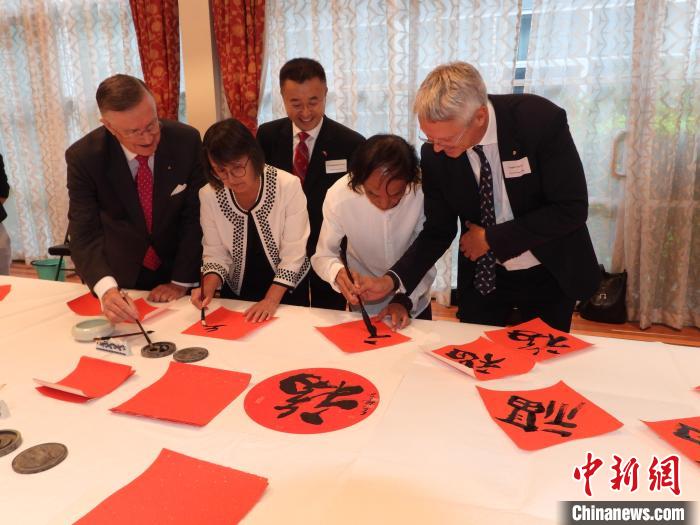 當(dāng)?shù)貢r(shí)間2月2日晚,中國(guó)駐悉尼總領(lǐng)事館在領(lǐng)館舉辦2024年春節(jié)招待會(huì)。當(dāng)晚的招待會(huì)現(xiàn)場(chǎng)上,來(lái)賓們互致新春祝福,并興致勃勃地體驗(yàn)中國(guó)書(shū)法。記者 顧時(shí)宏 攝