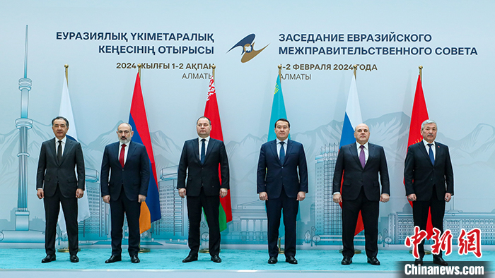 當(dāng)?shù)貢r間2月2日,哈薩克斯坦阿拉木圖,歐亞政府間理事會會議舉行。 中新社發(fā) 哈薩克斯坦總理府網(wǎng)站供圖