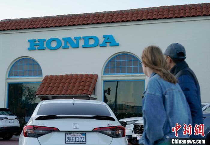 當?shù)貢r間2月6日,行人從美國加州伯林格姆一家本田汽車銷售店附近經(jīng)過。 中新社記者 劉關(guān)關(guān) 攝
