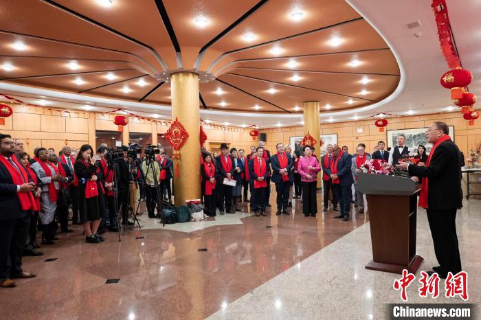 張軍在致辭時向現(xiàn)場來賓致以節(jié)日問候并向祖國人民拜年。他說,春節(jié)是中國最古老、最盛大的傳統(tǒng)節(jié)日,象征著團(tuán)圓與美滿,傳承著中華文明的基因,賡續(xù)著中華文化的血脈,凝聚著全球華人的家國情懷。春節(jié)作為農(nóng)歷新年也在越來越多走向世界。前不久,在中國和許多國家的積極推動下,聯(lián)合國大會通過決議,將春節(jié)(農(nóng)歷新年)確定為聯(lián)合國假日。這進(jìn)一步豐富了春節(jié)的世界意義,為更多的人走近中國、品味中國、體驗(yàn)中國提供了機(jī)會。