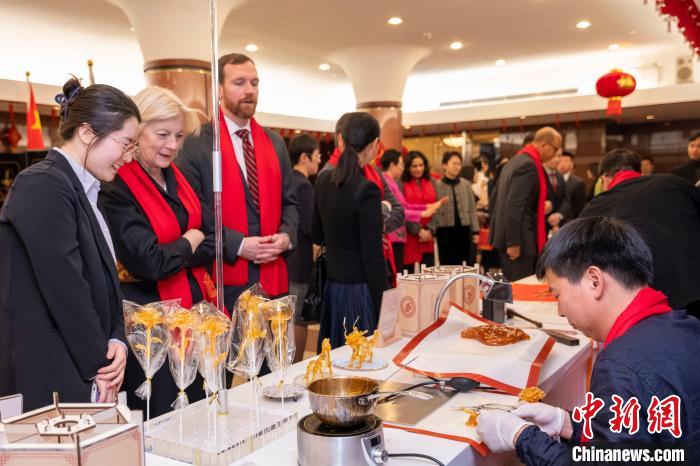 招待會上,來自浙江省的工藝美術(shù)大師和非遺傳承人精心準(zhǔn)備了各具特色的中國非遺和年俗互動項(xiàng)目,來自美國西北大學(xué)的音樂家演唱了激情澎湃的《為祖國干杯》和熱鬧喜慶的《龍船調(diào)》。來賓們紛紛表示,期待新的一年繼續(xù)與中國攜手努力,建設(shè)更美好的世界。(完)