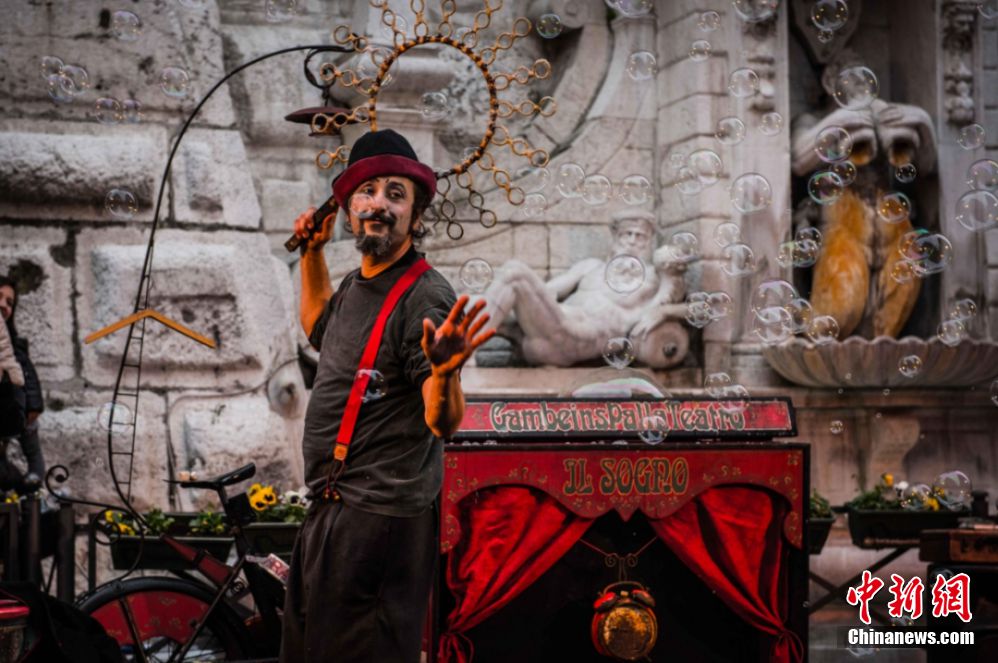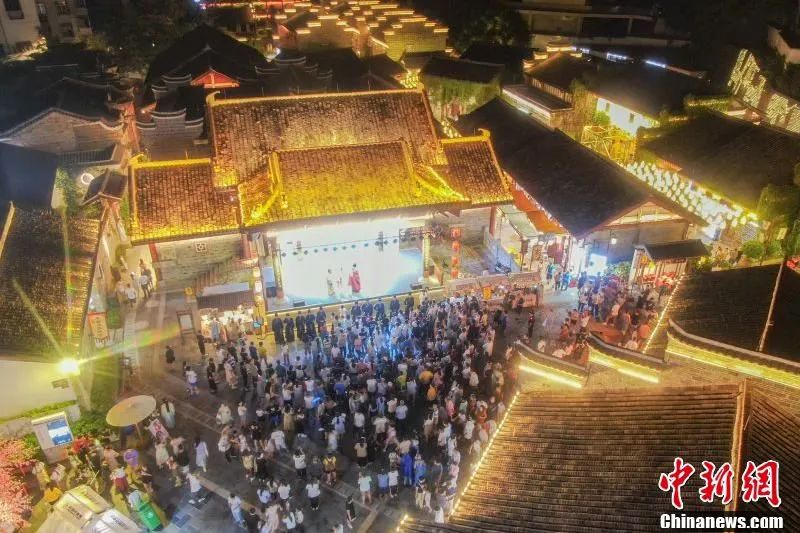 圖為國外藝術(shù)家在會昌戲劇小鎮(zhèn)中表演。圖源:會場戲劇小鎮(zhèn)公眾號