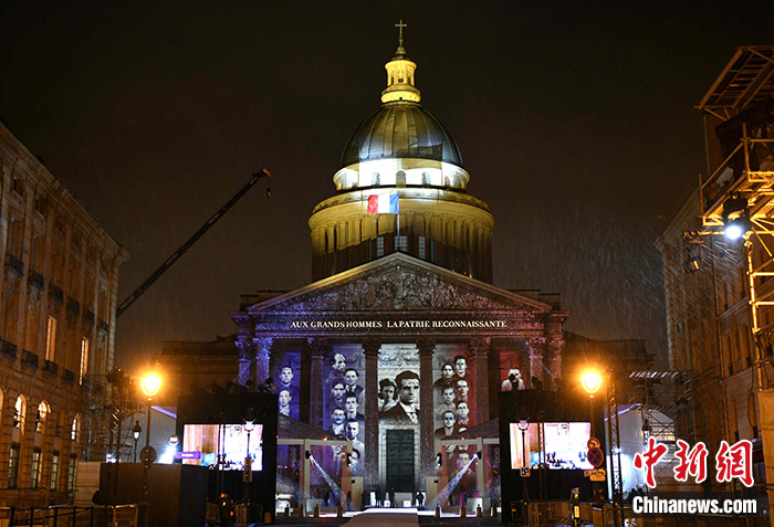 當(dāng)?shù)貢r(shí)間2月21日晚,法國二戰(zhàn)時(shí)期抵抗德國納粹侵略的戰(zhàn)士米薩克·馬努尚與他的夫人梅麗內(nèi)一同入葬先賢祠。馬努尚是首位入葬先賢祠的法共抵抗運(yùn)動(dòng)成員。 中新社記者 李洋 攝