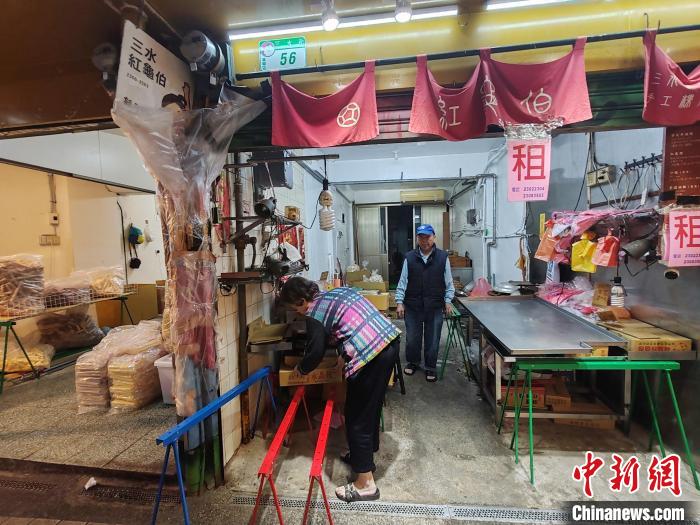 位于臺(tái)北萬(wàn)華區(qū)的三水紅龜伯是經(jīng)營(yíng)近70年的米食老攤,年逾80歲的陳新桂、董敏卿夫婦每天清晨4點(diǎn)便會(huì)手工磨米炊粿?!≈行律缬浾?楊程晨 攝