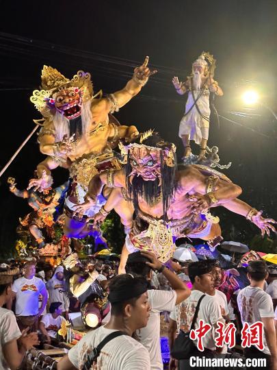 當(dāng)?shù)貢r(shí)間3月10日晚,巴厘島“Ogoh-Ogoh”游行儀式。馬旭珂 攝
