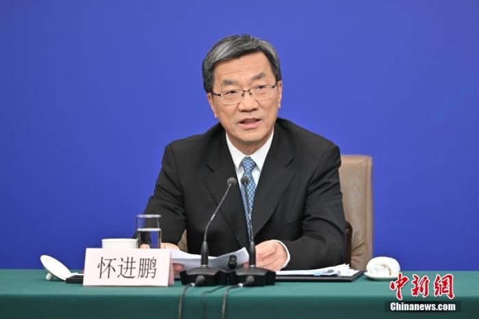圖為懷進鵬答記者問。 中新社記者 何蓬磊 攝