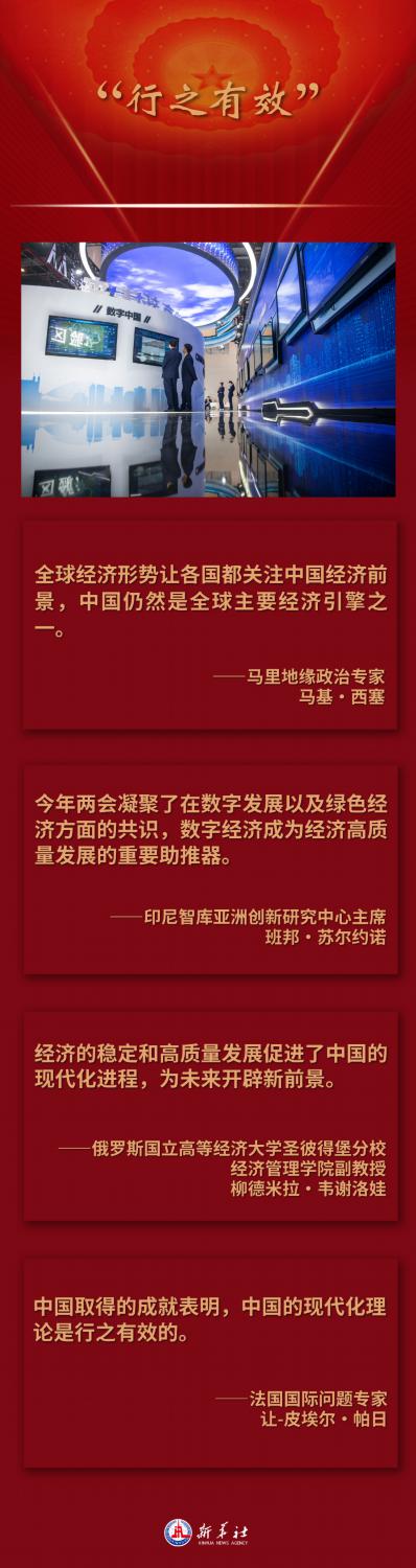 如何推動(dòng)中國式現(xiàn)代化建設(shè),是國際社會(huì)長期關(guān)注中國的一大焦點(diǎn)。透過中國全國兩會(huì)窗口,國際輿論和海外人士看到,在中國式現(xiàn)代化的道路指引下,中國經(jīng)濟(jì)社會(huì)發(fā)展取得令人矚目的成績,給世界各國帶來合作共贏的新機(jī)遇,中國式現(xiàn)代化為人類實(shí)現(xiàn)現(xiàn)代化提供了新選擇,為發(fā)展中國家拓展現(xiàn)代化路徑提供了有益啟示。