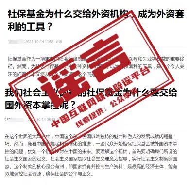 中新網(wǎng)3月18日電 據(jù)“互聯(lián)網(wǎng)聯(lián)合辟謠平臺(tái)”微信公眾號(hào)消息,近段時(shí)間以來,有少數(shù)網(wǎng)絡(luò)自媒體發(fā)布視頻稱,我國社會(huì)保險(xiǎn)基金“幾乎全部交給外資機(jī)構(gòu)管理”,且被用于“買賣A股”,質(zhì)疑社保基金成為“外資套利的工具”。經(jīng)中國互聯(lián)網(wǎng)聯(lián)合辟謠平臺(tái)向有關(guān)主管部門核實(shí)查證,前述言論均為不實(shí)信息。