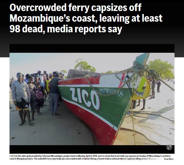 中新網(wǎng)4月9日電 據(jù)美聯(lián)社當(dāng)?shù)貢r間4月8日報道,一艘臨時渡輪在莫桑比克北部海岸傾覆,已造成至少98人死亡,其中包括多名兒童。